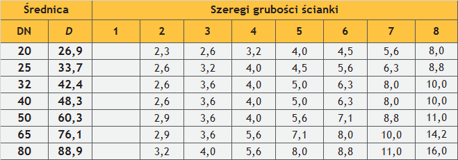 EN 10253-2 Standard in table 17 stipulates preferred diameters and wall thicknesses so that they fit pipe dimensions stipulated in EN 102020. Here is the table for diameter from 26.9 fi – 88.9 fi: